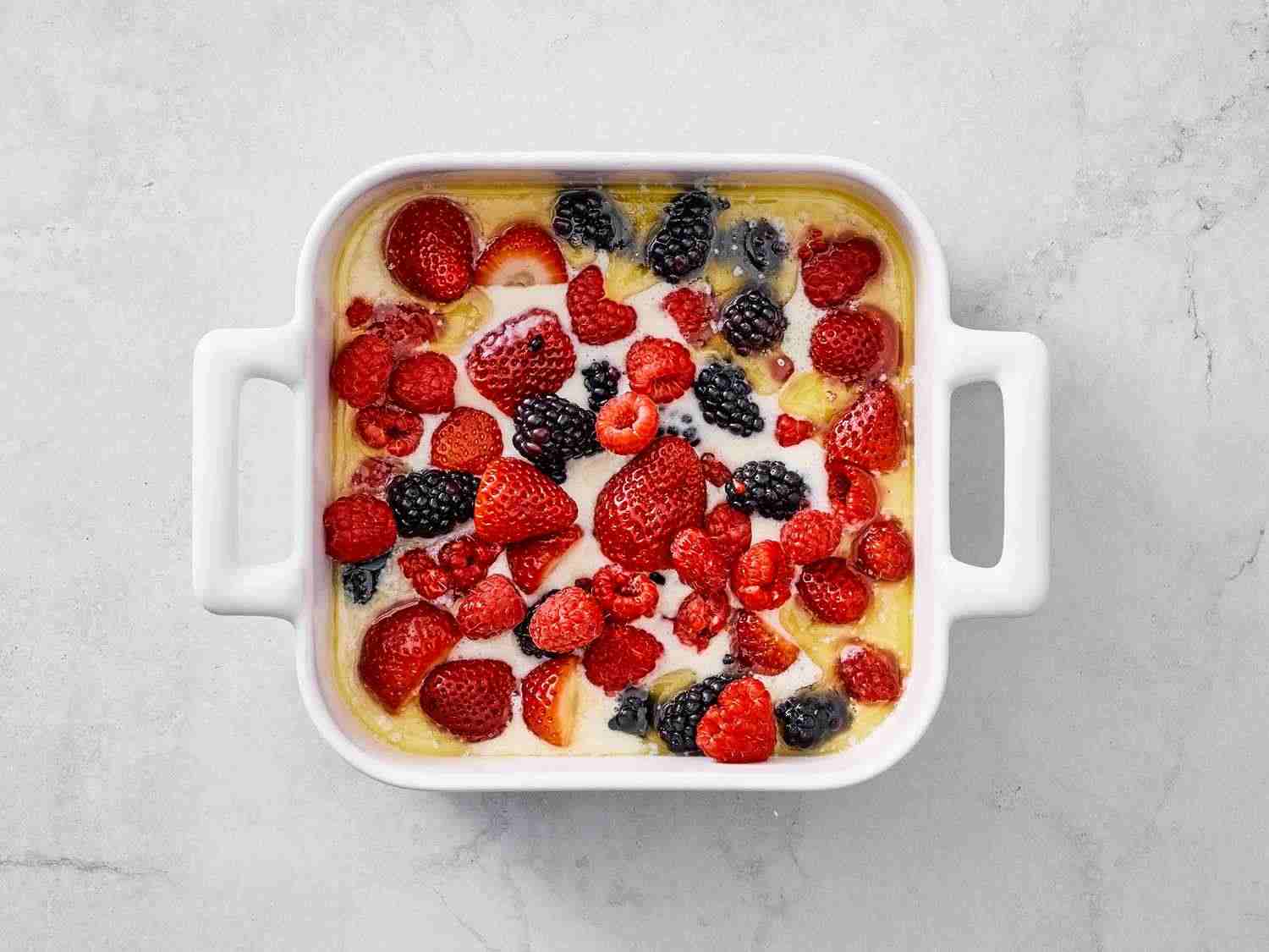 - Step 5:Scatter fruit over batter. Sprinkle with 1 tablespoon sugar. Dotdash Meredith Food StudiosDotdash Meredith Food Studios