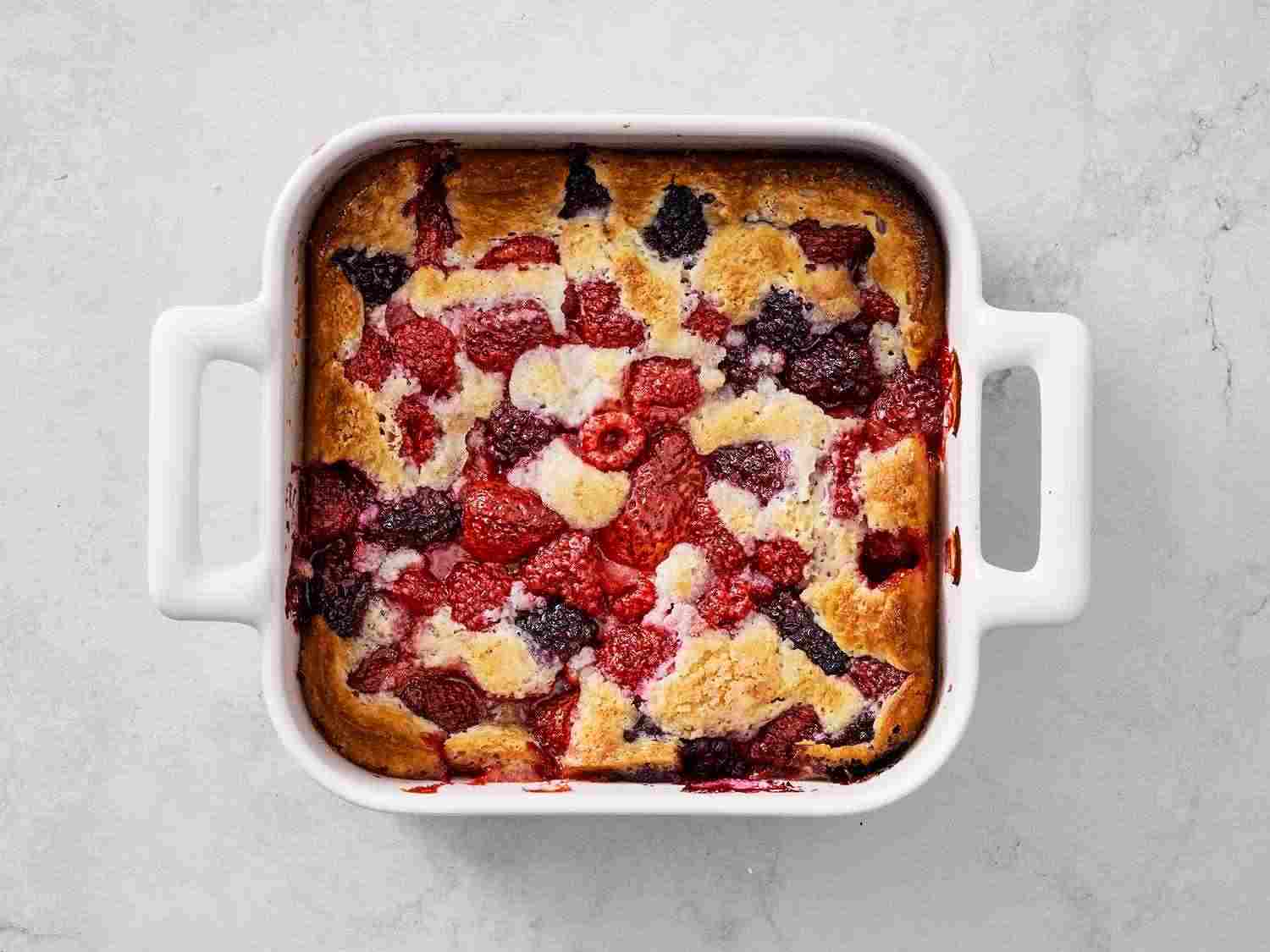 This mixed berry cobbler works well with any juicy summer fruit: peaches, nectarines, blueberries, blackberries, strawberries, and raspberries. Short of serving store-bought ice cream, you won't find a simpler, more delicious dessert than this fruit cobbler. And if you use frozen berries, this dessert can be assembled in less than 10 minutes. Serve warm or at room temperature with a dollop of whipped cream or a small scoop of vanilla ice cream.